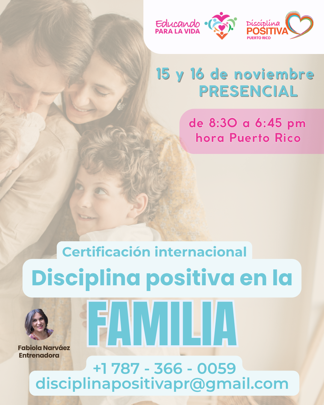 Para más información puede escribirnos a disciplinapositivapr@gmail.com o por WhatsApp al 787-366-0059.